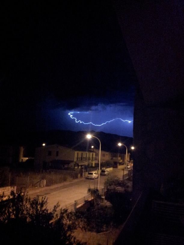 Temporale show nella notte: tantissimi gli abitanti dell’area vasta che si sono fermati a fotografare lo spettacolo dela natura, quello offerto dai fulmini nel cielo. Nella foto scattata da Luisa, il temporale che illumina a giorno il cielo di Pula, una sorpresa anche per i molti turisti già presenti nella costa. Fortunatamente non ci sono stati grossi danni nonostante la pioggia e la grandine caduta in maniera abbondante anche nel capoluogo.
