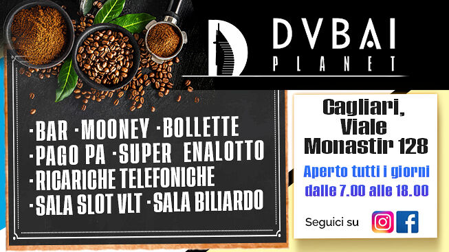 E dopo lo shopping? Beh, sarà possibile gustare una fantastica colazione, un ricco aperitivo o un buonissimo caffè nel bar dello store. Ma il Dubai Planet non è solo buon cibo. È anche intrattenimento, grazie alle ampie sale interne in esso presenti: sala slot vlt e sala biliardo. Ma non finisce qui. Il Dubai Planet offre infatti molteplici servizi per soddisfare le richieste di un target di clientela più ampio: Mooney, pagamento bollette, Pago Pa, SuperEnalotto, ricariche telefoniche.