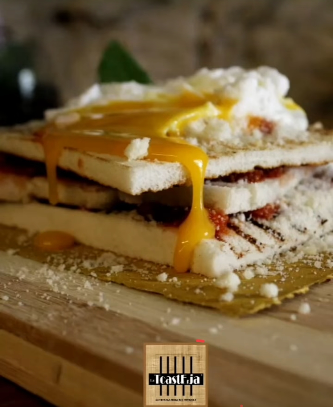 Immaginate un toast tostato alla perfezione, con strati di gustosa salsa di pomodoro, formaggio fondente e uova. Questa deliziosa combinazione di sapori si fonde in un perfetto equilibrio tra dolcezza, cremosità e un pizzico di piccantezza. Un sapore che vi farà innamorare dal primo morso!