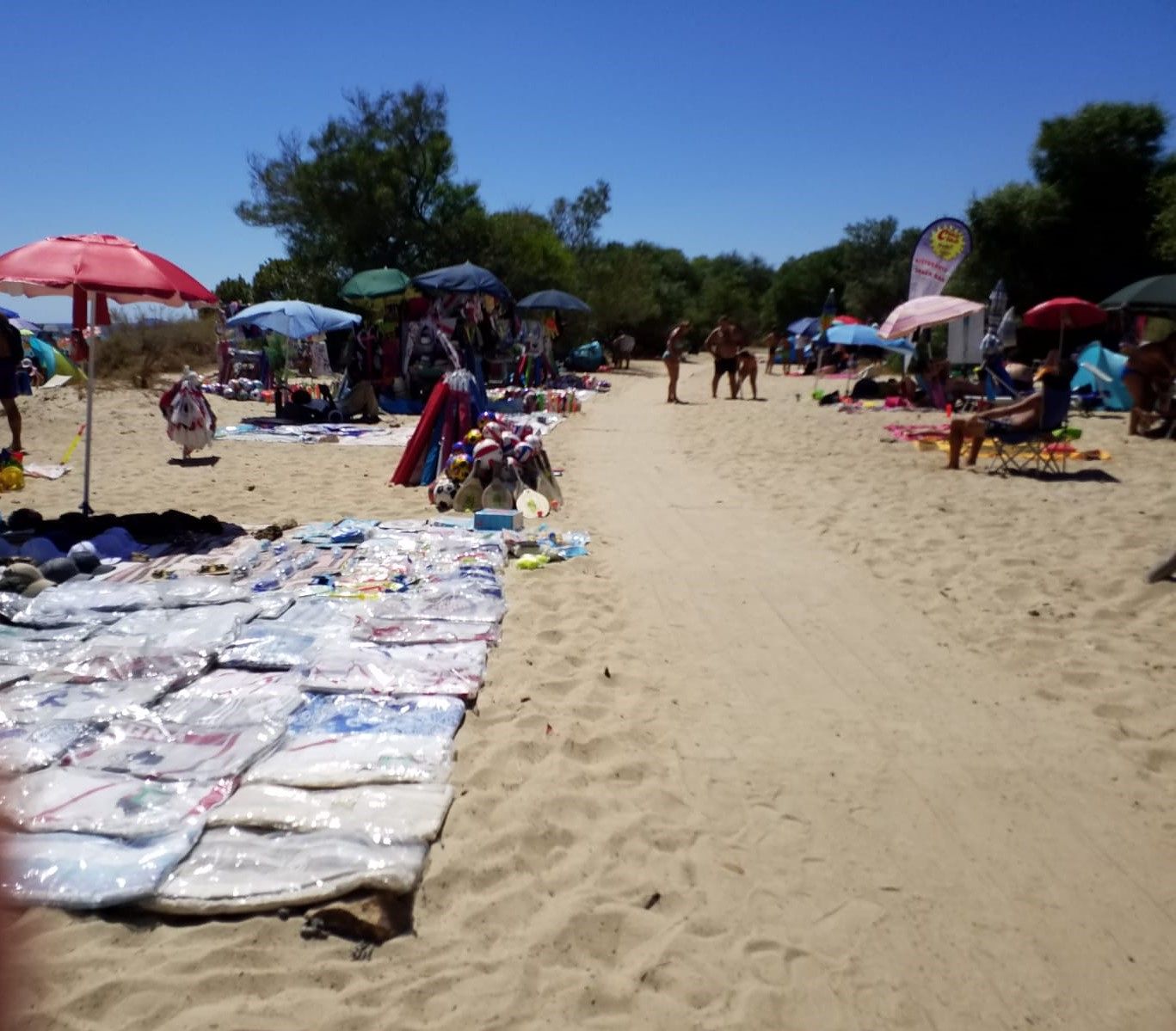 Alla sardinizzazione della spiaggia (le sardine stanno più larghe nella scatoletta) si aggiunge un suk dove si mercanteggia ogni cosa, un assedio di parcheggi e olezzi gastronomici e uno scarico incontrollato di rifiuti vari a ridosso della spiaggia.