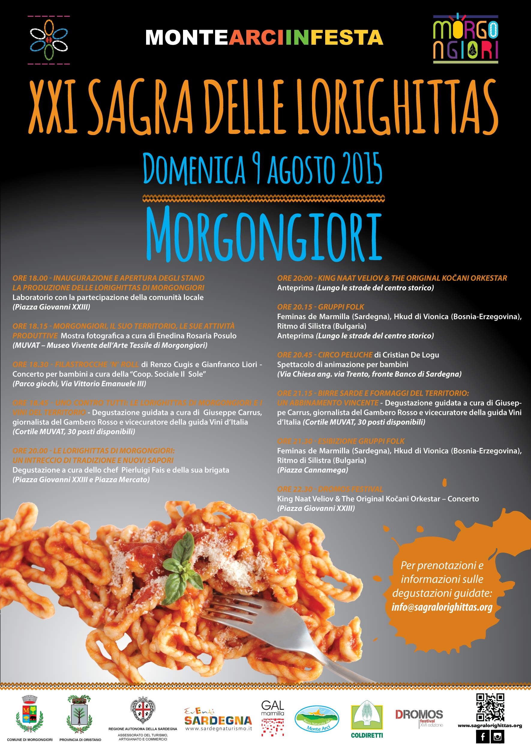 Il Comune di Morgongiori organizza domenica 9 agosto la XXI edizione della Sagra delle Lorighittas: specialità di pasta artigianale, lavorata unicamente a mano, esclusiva del paese di Morgongiori.