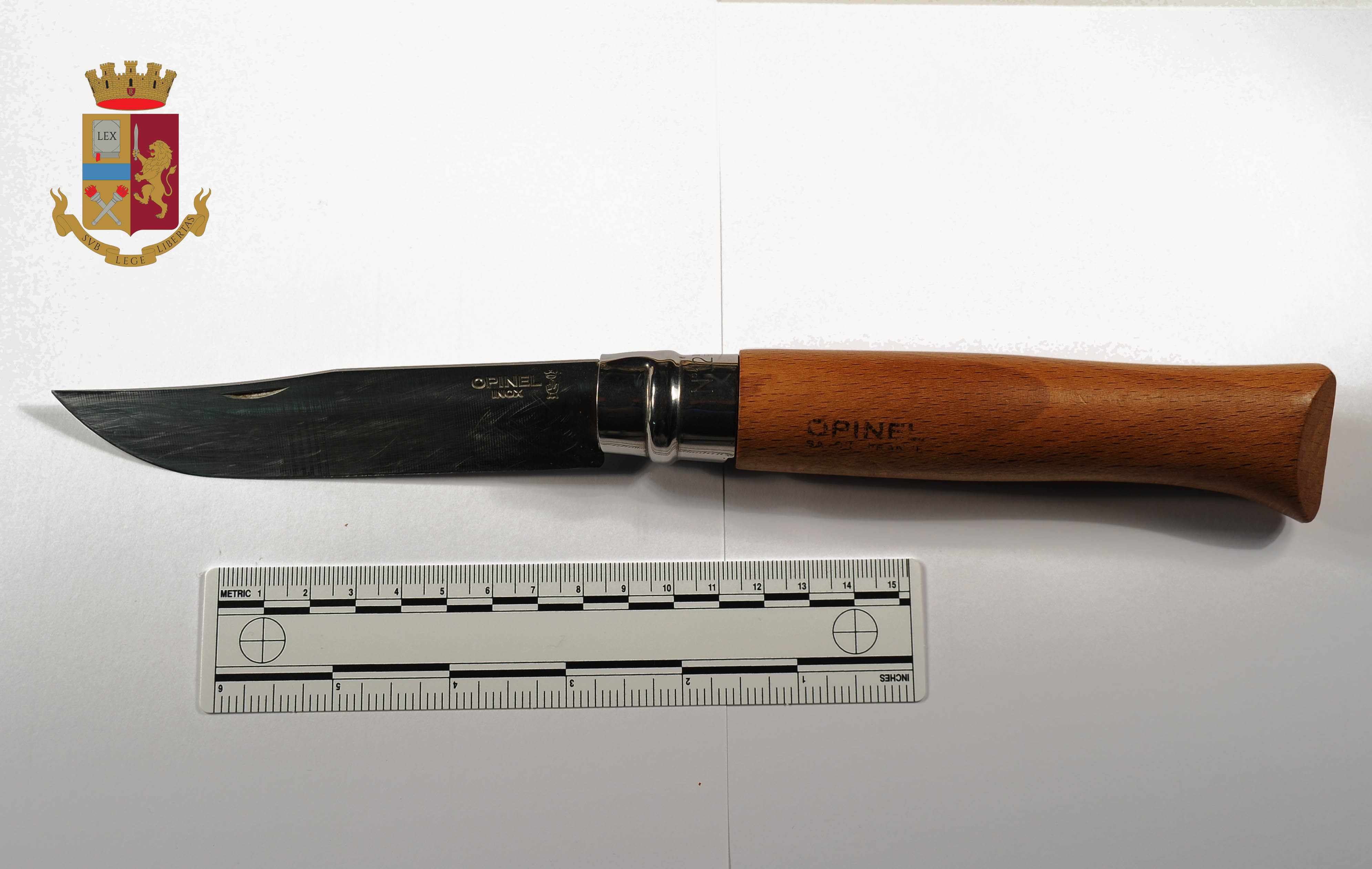 Il primo intervento mercoledì in un locale di Nuoro per una persona in evidente stato di ebbrezza che disturbava la clientela. Giunte prontamente sul posto, le Volanti hanno identificato M.S., 62 anni, nuorese, pensionato, con precedenti penali e di polizia per guida in stato di ebbrezza e per violenza a pubblico ufficiale, il quale era sprovvisto di documenti di riconoscimento e veniva trovato dagli agenti in possesso di un coltello a serramanico lungo oltre 28 cm, occultato all’interno di una tasca del giubbotto. L’uomo è stato accompagnato in Questura e, dopo gli accertamenti di rito, denunciato alla Procura della Repubblica.