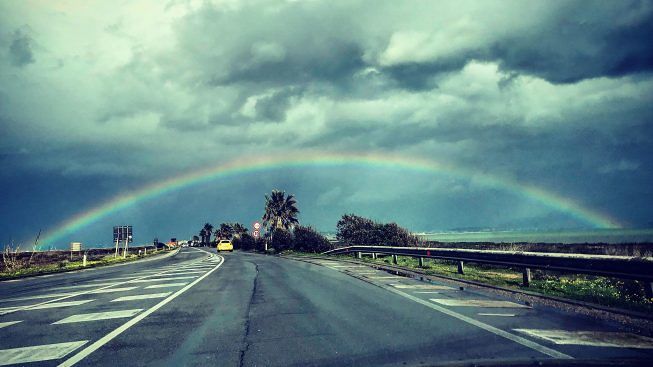 Un bellissimo arcobaleno sulla statale 195, tra Cagliari e Capoterra: bel tempo si spera, come si vede nella foto del giorno di Cagliari Online scattata da David Fin oggi alle 15. Una immagina particolarmente significativa nella giornata di oggi.