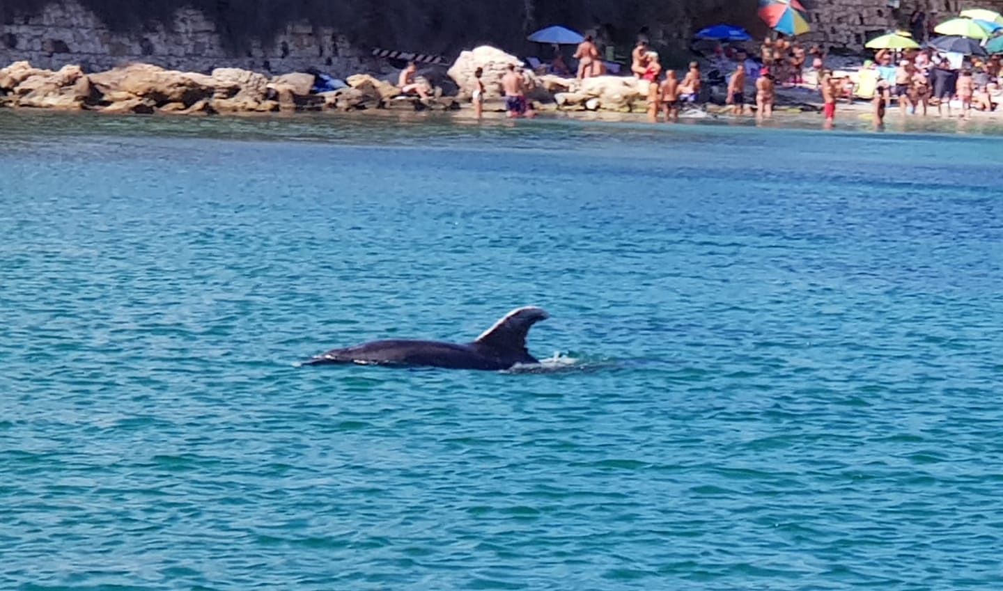 Un bellissimo delfino davanti alla spiaggia di Calamosca: lo show di fronte ai bagnanti cagliaritani, per la gioia soprattutto dei bambini. Con le sue nuotate ha reso ancora più bella una domenica dominata dal maestrale. Nella foto scattata da Filippo Pau, il momento della bellissima “danza” sul litorale cagliaritano.