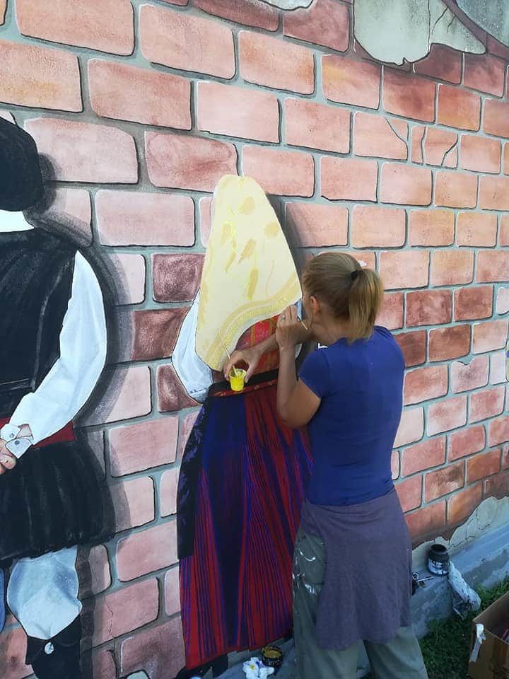 Alla realizzazione del murales, ha partecipato attivamente Luca Cocco, compagno di Agnes Zimmermann. “Quando ho conosciuto a Luca, lui svolgeva un altro lavoro. Pian piano ha iniziato ad aiutarmi solo il fine settimana e in seguito abbiamo deciso di lavorare costantemente insieme”.