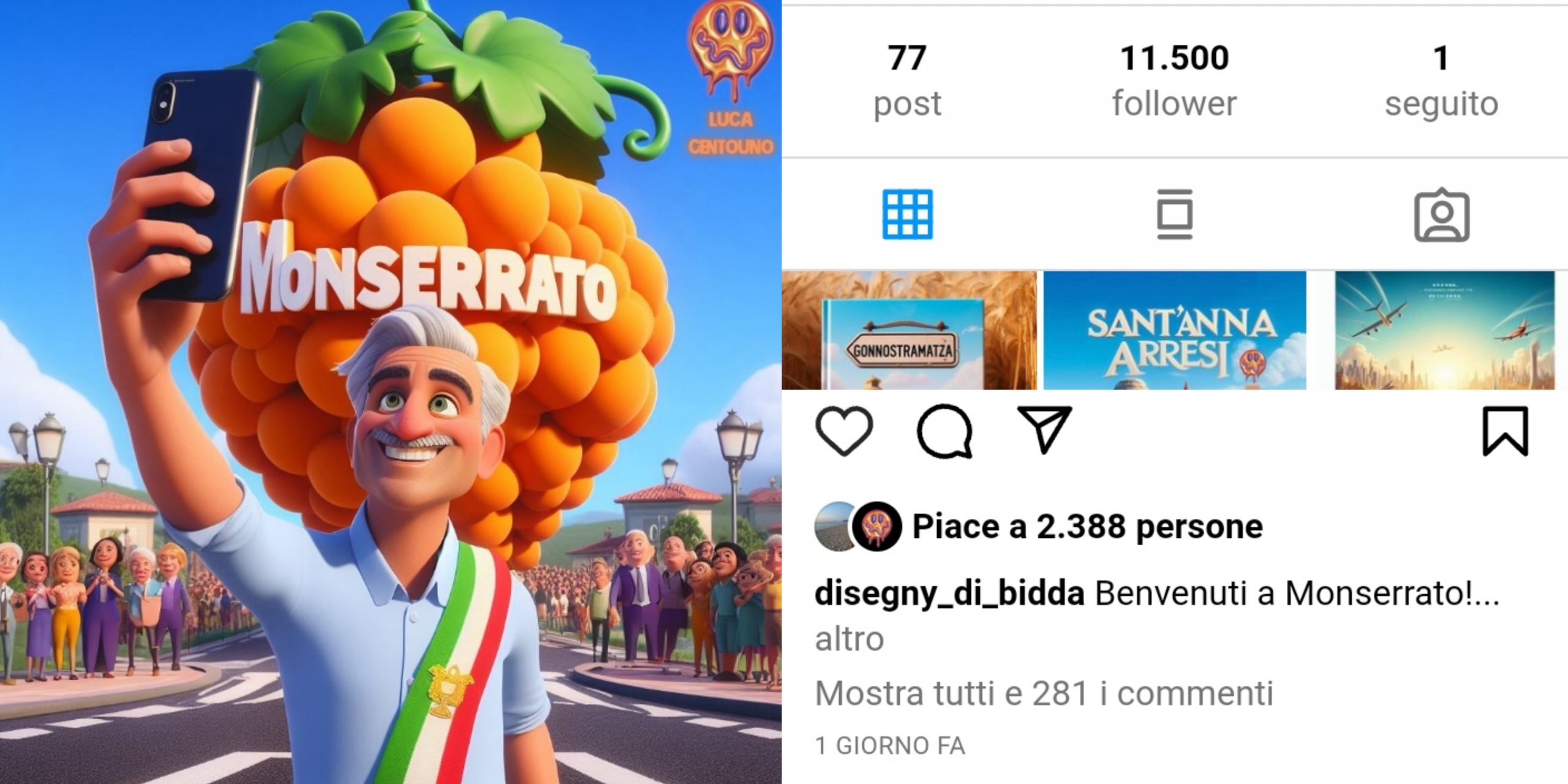 Lui si chiama Luca Meloni e in pochi giorni è diventato il creatore digitale più ricercato in Sardegna: oltre 11 mila follower, i numeri crescono ora dopo ora, e centinaia di richieste pervenute sul profilo Instagram “Disegny di bidda” per vedere realizzata la località preferita. Ha iniziato per caso con Serramanna, ha proseguito con Samassi e altri centri limitrofi: i primi a condividere nelle pagine social personali e istituzionali sono stati Alberto Urpi, sindaco di Sanluri, il Comune di Las Plassas, Umberto Oppus da Mandas, il comune di Pula. Insomma, un vero e proprio successo che ha catapultato il giovane ventiquattrenne alla ribalta regionale. Carciofi, nuraghi, castelli, castagne e torrone sono piaciuti assai come le terme di Sardara che rappresentano il centro del Medio Campidano ma i quasi tre mila like, il record sinora per una immagine singola, sono stati cliccati per Monserrato. Locci, alla vigilia dell’inaugurazione, avvenuta l’estate scorsa, del grappolo d’uva preannunciò l’opera come un richiamo attrattivo e meta di selfie: una intuizione vincente, tanto da essere rappresentata come simbolo monserratino. “Ringrazio il giovane Designer Luca Meloni per la simpaticissima raffigurazione del sottoscritto e della città di Monserrato.