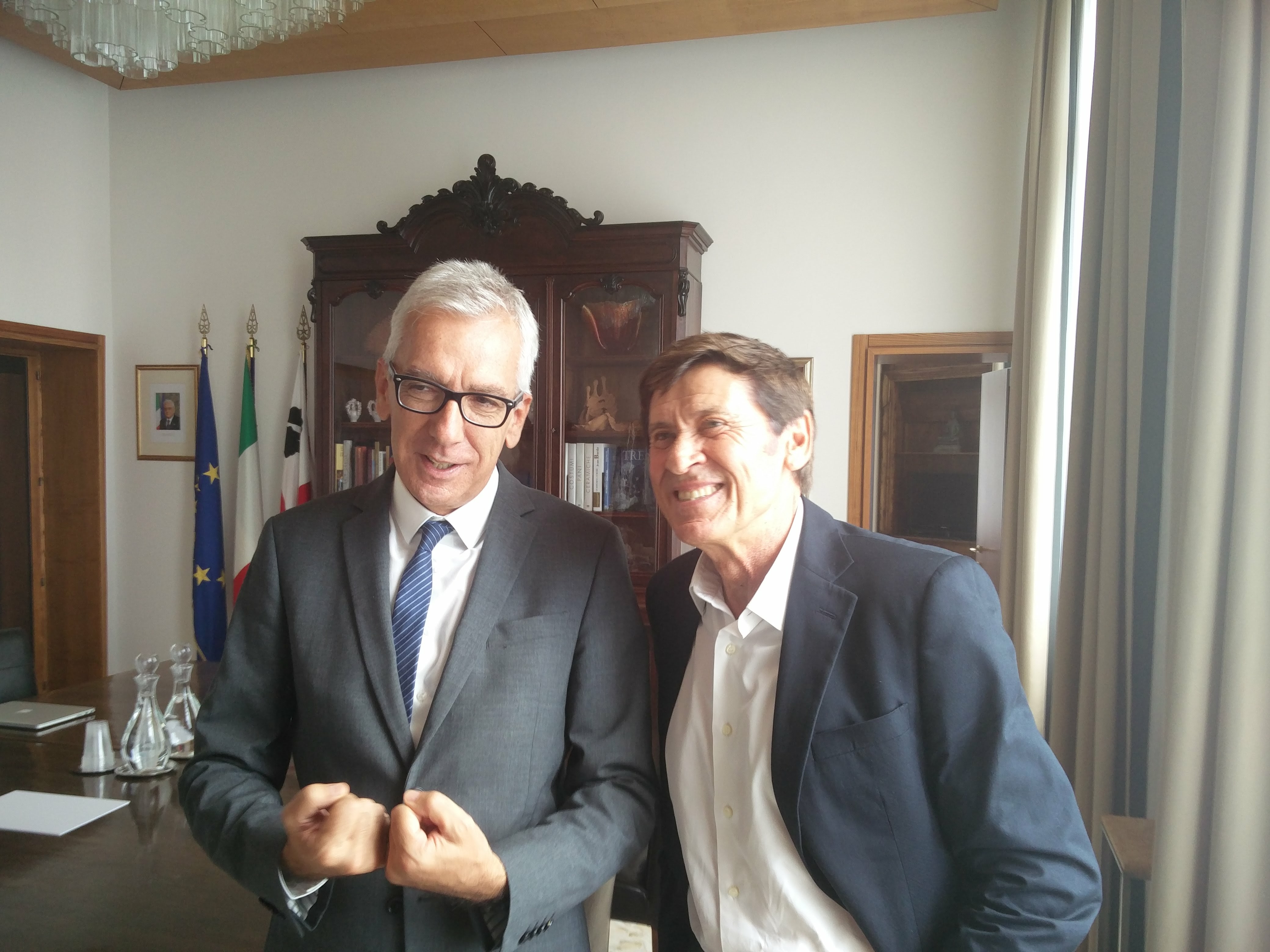 Gianni Morandi. In chiusura dellaconferenza stampa, le parole di Gianni Morandi: “Ho già potuto ammirare immagini incredibili della Sardegna, posti bellissimi: ringrazio il presidente Pigliaru per questo incontro e raccolgo tanto entusiasmo attorno al progetto. Affronterò questa avventura con gioia, approfitterò dell’esperienza per conoscere e scoprire meglio la vostra terra, nonostante non da oggi abbia intrattenuto tanti legami con i sardi”.