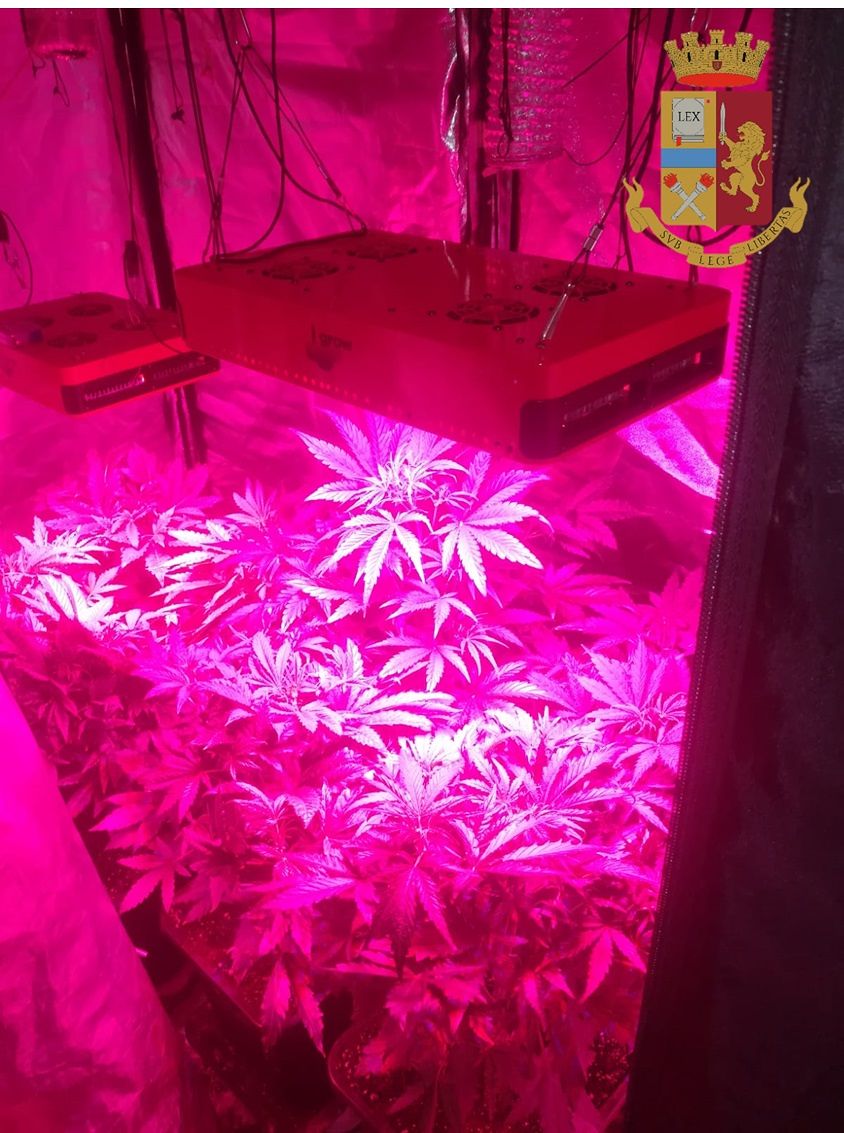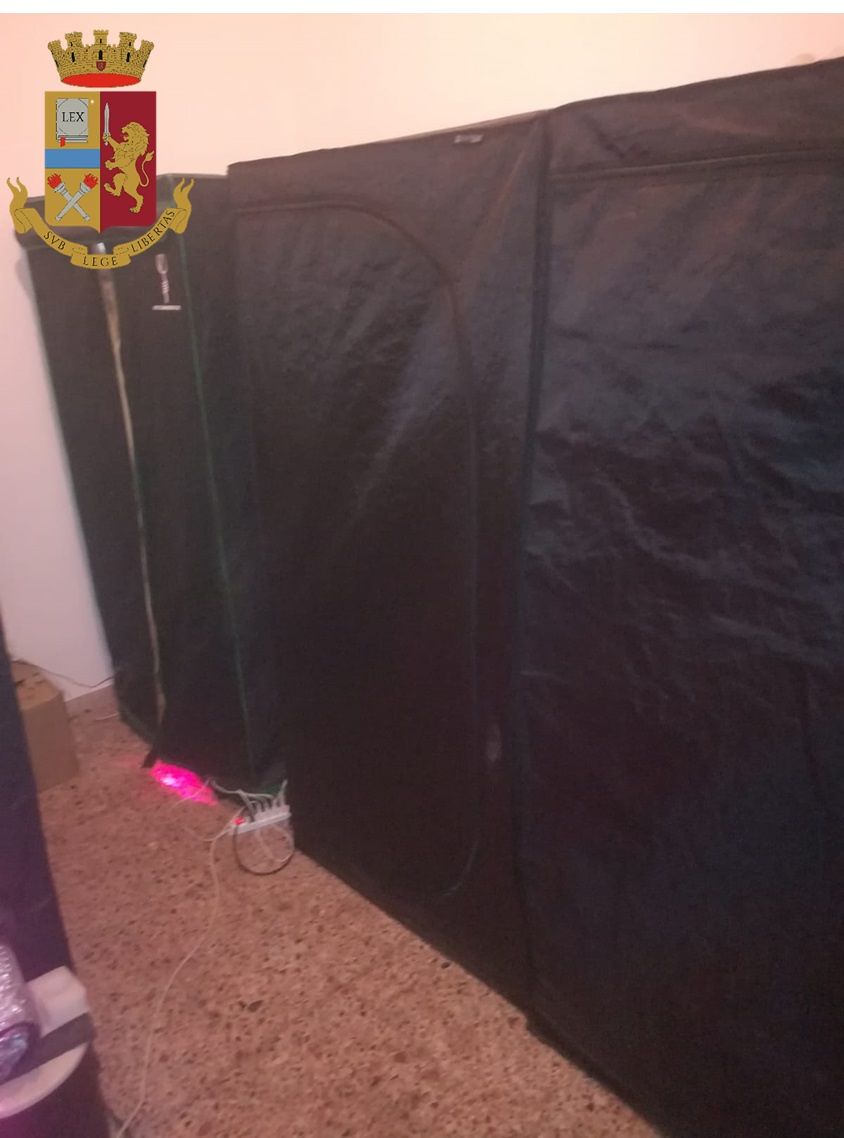 Appena entrati, i poliziotti sono stati investiti da un fortissimo odore di marjuana. L’abitazione è stata infatti adibita a serra indoor con una stanza dedicata esclusivamente alla coltivazione delle piante, 16 piante in totale di circa 50 cm di altezza. Una seconda stanza, invece, è stata destinata a “locale essicazione” delle piante e preparazione delle varie confezioni pronte per la vendita, con annessi bilancini di precisione e un portafoglio contenente pezzi di carta con annotate delle “ordinazioni”.