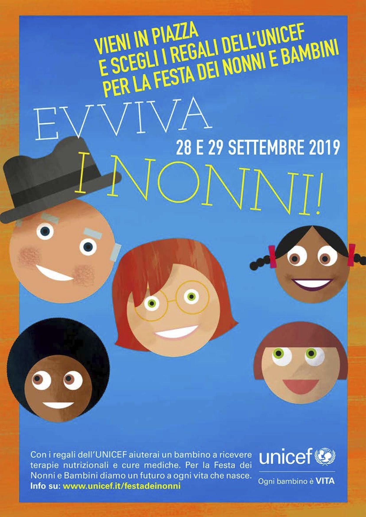 L’UNICEF Italia torna per celebrare la “Festa dei nonni e dei bambini” (2 ottobre) con oltre 400 appuntamenti organizzati in tutta Italia grazie al supporto di 2.000 volontari; gli eventi si svolgeranno soprattutto nei giorni 28-29 settembre e il 2 ottobre in piazze, strade e scuole.