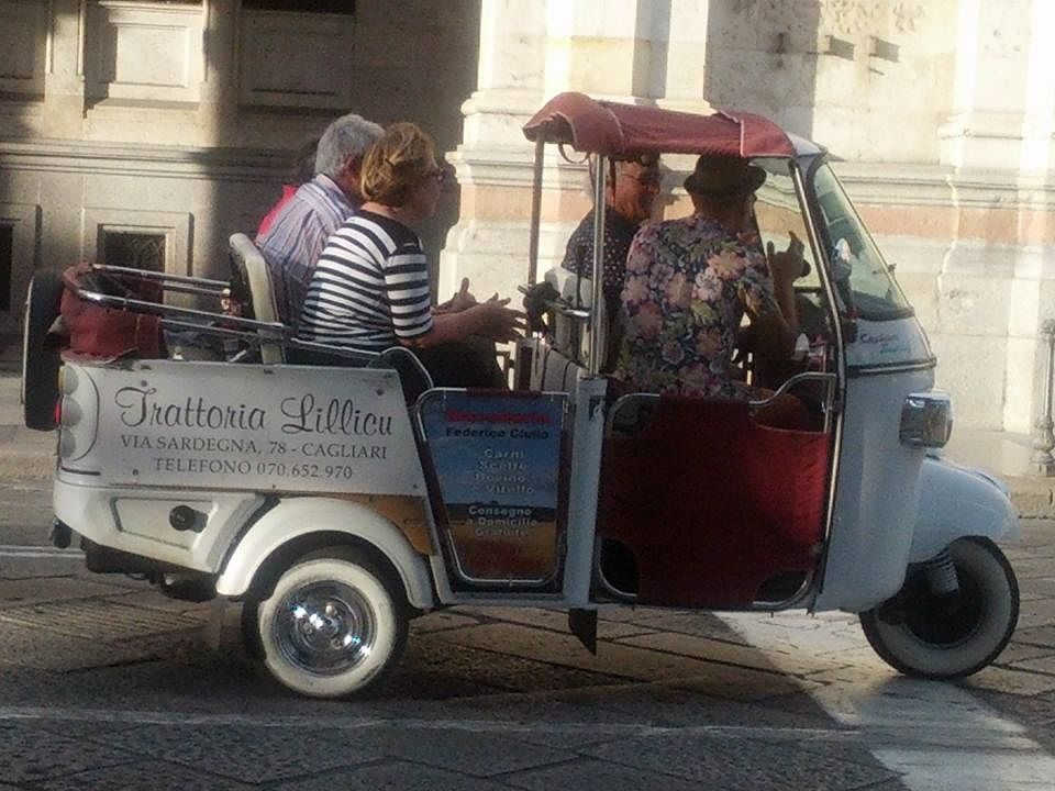 A volte un po’ di fantasia e ingegno sono sufficienti per convertire una passione in lavoro. Pertanto, un’apixedda trasformata in una sorta di “mini-taxi” (nella foto di Damiana Corda) può essere utilizzata per accompagnare i turisti in giro per la città o in altre zone turistiche. Quest’idea, sinora, ha risolto il problema a diversi disoccupati che, grazie a questo espediente, si sono “inventati” un’attività lavorativa che, a quanto pare, oltre a suscitare interesse e curiosità, rende. Alcuni giovani di Cagliari e dell’hinterland hanno messo in pratica quest’idea e si sono creati un’attività. A Barumini un giovane accompagna i turisti in giro tra i nuraghi su un’apixedda trasformata in un calessino turistico. Ma anche a Cagliari questa iniziativa scacciacrisi ha fatto la fortuna di alcuni. Il capoluogo sardo è ricco di mete turistiche e lo si può scoprire in tanti modi: a piedi, in bicicletta, su una vecchia Fiat 500 o nella mitica Vespa. Ma oltre a queste possibilità c’è appunto un altro modo alternativo e suggestivo che i turisti hanno sinora apprezzato per visitare la città: in tour nella mitica apixedda.
