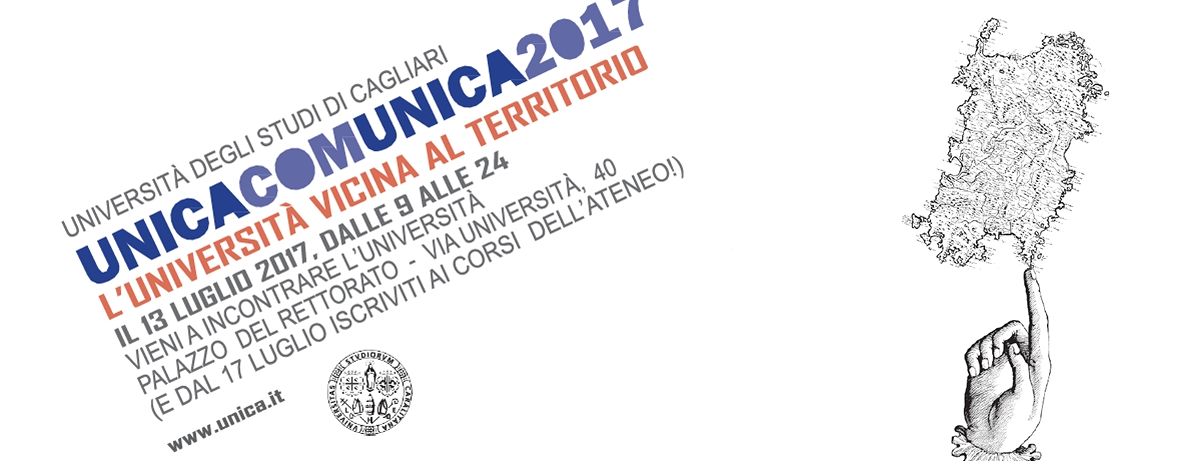 Si rinnova anche quest’anno l’appuntamento con UnicaComunica 2017, l’evento con il quale l’Università degli Studi di Cagliari apre le porte alla città per presentare agli studenti e alle loro famiglie l’offerta formativa per il nuovo anno accademico. Denso il calendario degli eventi in programma: dalle 9.30 alle 13 è prevista nell’atrio del Rettorato la presentazione dei poster, a cura degli autori, delle 10 migliori tesi di ciascuna Facoltà. Dalle 10 alle 11, nell’Aula Magna del Rettorato si terrà la premiazione dei migliori laureati dell’Ateneo e, a seguire, dalle 11 alle 12.30, la presentazione in power point con tecnica pechakucha delle migliori tesi di laurea (saranno valutate la chiarezza e l’efficacia comunicativa).