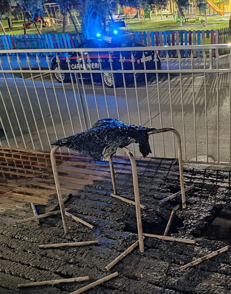 All’arrivo sul posto, i militari hanno accertato la presenza di un principio d’incendio che stava interessando alcuni arredi esterni di un bar, già in fase di spegnimento da parte del titolare dell’attività, un commerciante sessantaquattrenne residente in paese. L’esercizio pubblico risultava già chiuso al momento dei fatti.