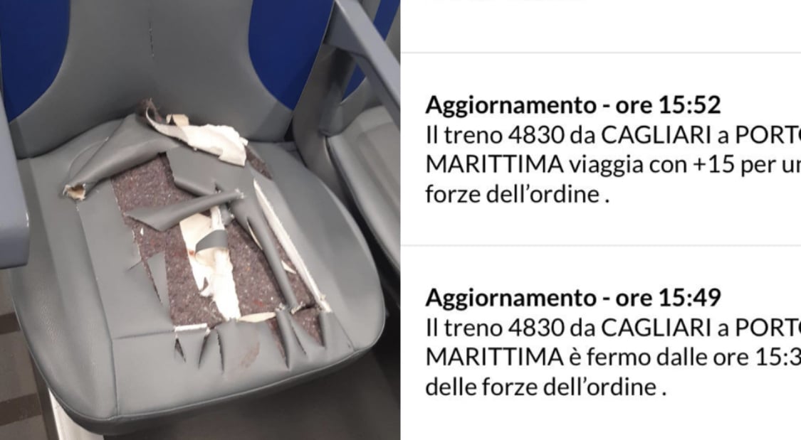 Treni vandalizzati e ritardi causati da disordini a bordo: oggi un nuovo episodio, il convoglio 4830 partito da Cagliari e diretto a Porto Torres è rimasto fermo in stazione per 15 minuti. A Oristano, infatti, è stato necessario l’intervento delle forze dell’ordine, il fatto è avvenuto alle 15,35. Non solo: un sedile completamente distrutto del HTR412-007, segnale evidente di un oltraggio al bene di tutti. Sono gli stessi viaggiatori che segnalano quanto accade, dispiaciuti e solidali con il personale di Trenitalia che, molto spesso, devono fare i conti con chi crea disagi: biglietti non validi o non acquistati possono diventare motivo di attrito a tal punto da generare momenti di apprensione. Un servizio importante a disposizione di tutti, insomma, che merita di essere rispettato anziché deturpato o vandalizzato.