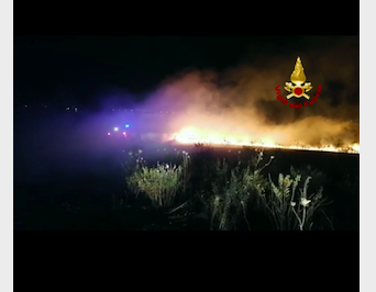 Incendio di sterpaglie e vegetazione intorno alle 23 di ieri nei pressi del lago Simbirizzi e della Statale 125 in territorio del comune di Quartucciu.