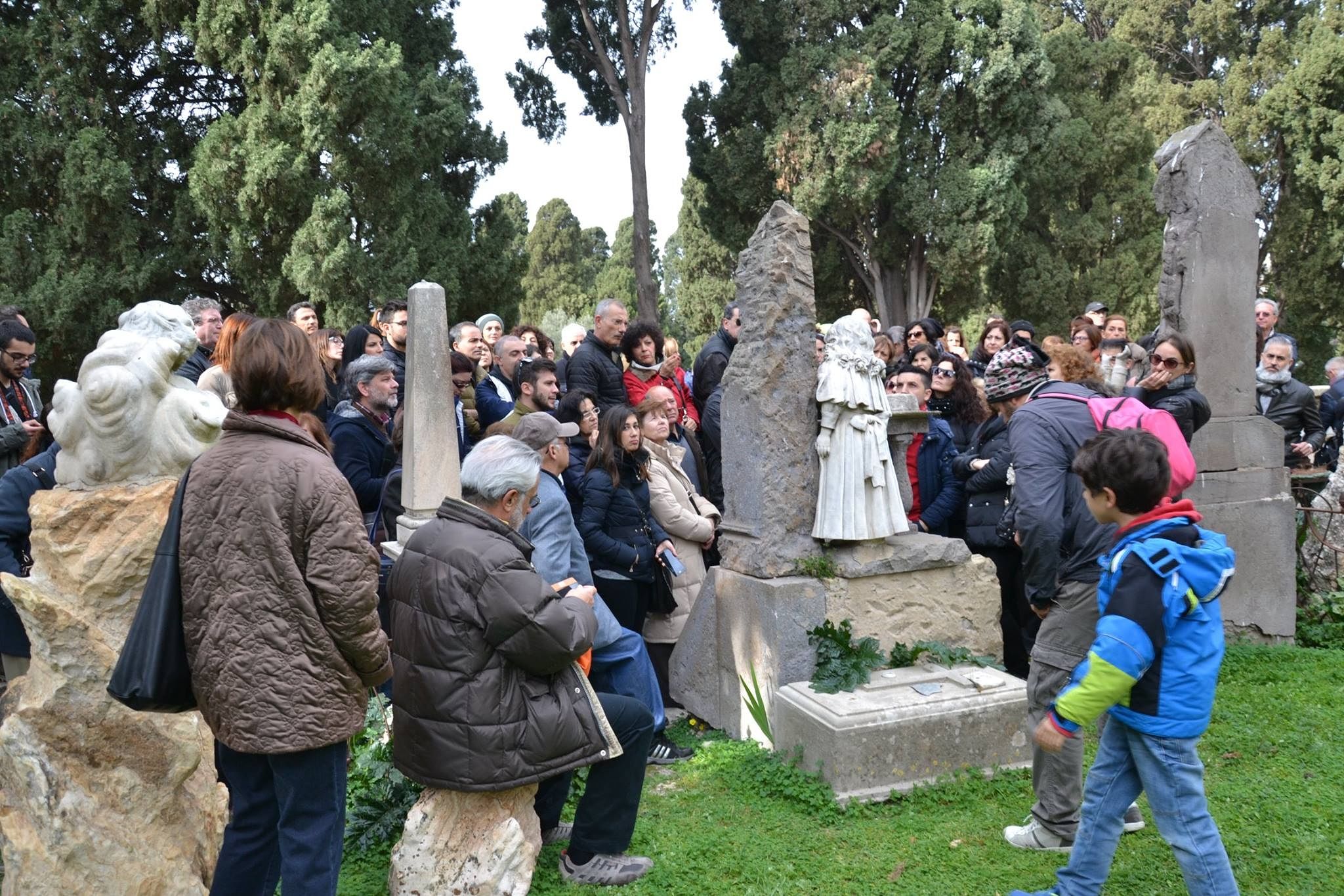 È stata raccontata l’epopea del cimitero monumentale, vera galleria di opere d’arte a cielo aperto “ora in fase di recupero da parte del Comune anche se c’è tanto da fare”. Poi un salto indietro nel tempo davanti al cantiere nel quale gli archeologi hanno imposto lo stop, per la scoperta dei resti di un castello parrebbe catalano-aragonese. È stata illustrata la storia dei rifugi di guerra, dei padri Mercedari, delle scoperte archeologiche, del Castello è del convento annesso. Infine, attraverso la necropoli romana, nel Cimitero monumentale, usato dal 1839 al 1968, con l’illustrazione delle sue tombe più famose: Giovanni Spano, Piero Schiavazzi, Ottone Bacaredda, Carlo Sanna, l’architetto Francesco Giarrizzo, autore della facciata della Cattedrale di Cagliari. Cittadini illustri di una città ai quali è stato reso omaggio, con una visita che ne ha esaltato le gesta e l’importante operato.
