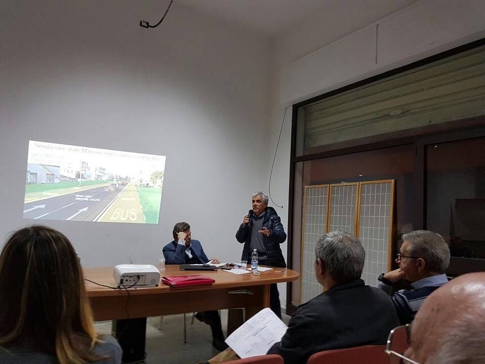 Dopo gli onori di casa della segretaria cittadina Giuseppina Demurtas (scettica sulla rivoluzione in arrivo, “non risolverà i problemi”, ha dichiarato) e dal consigliere comunale quartese Francesco Piludu, il piano di viale Marconi è stato presentato da Fabrizio Marcello, consigliere comunale cagliaritano e metropolitano. Ha ricordato le 35 mila auto al giorno e (3 mila e 300 nelle ore di punta) che percorrono l’asse da Cagliari a Quartu e le novità in arrivo: senso unico da Quartu verso Cagliari, due corsie laterali riservate alle corsie preferenziali per i bus e il senso unico verso Quartu sulla strada arginale di Terramaini.