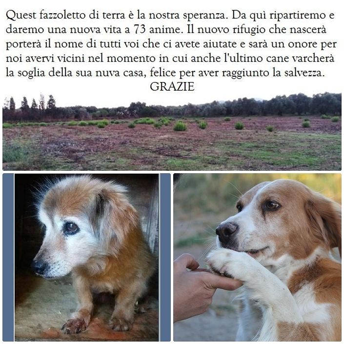 Un “fazzoletto di terra” come nuova speranza: «Da qui ripartiremo per ridare una nuova vita a 73 anime, il nuovo rifugio che nascerà porterà il nome di tutti voi che ci avete aiutate e sarà un onore per noi avervi vicini nel momento in cui anche l’ultimo cane varcherà la soglia della nuova casa, felice per aver raggiunto la salvezza».