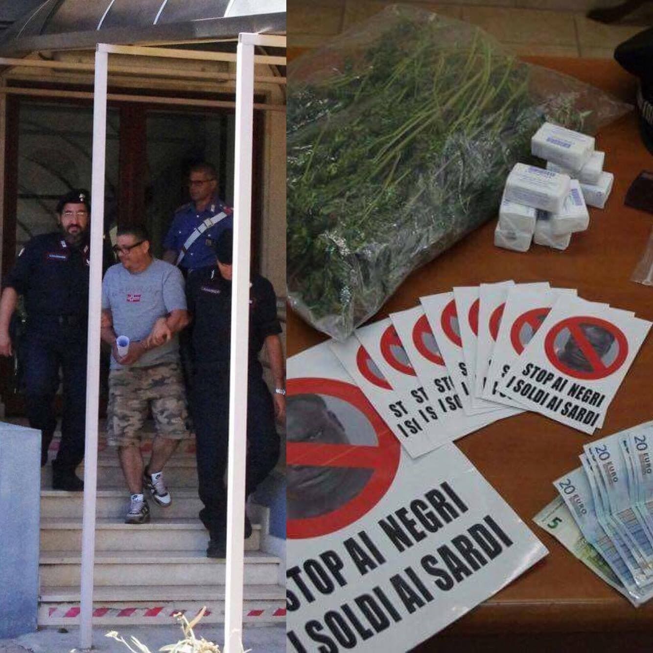 Durante la perquisizione sono stati rinvenuti volantini adesivi a sfondo razzista identici a quelli attaccati due giorni fa nelle vie di Villacidro; per quest’ultimo aspetto, il Garippa è ulteriormente denunciato. L’uomo è stato sottoposto agli arresti domiciliari in attesa dell’udienza di convalida fissata nella mattinata di lunedì presso il Tribunale di Cagliari.