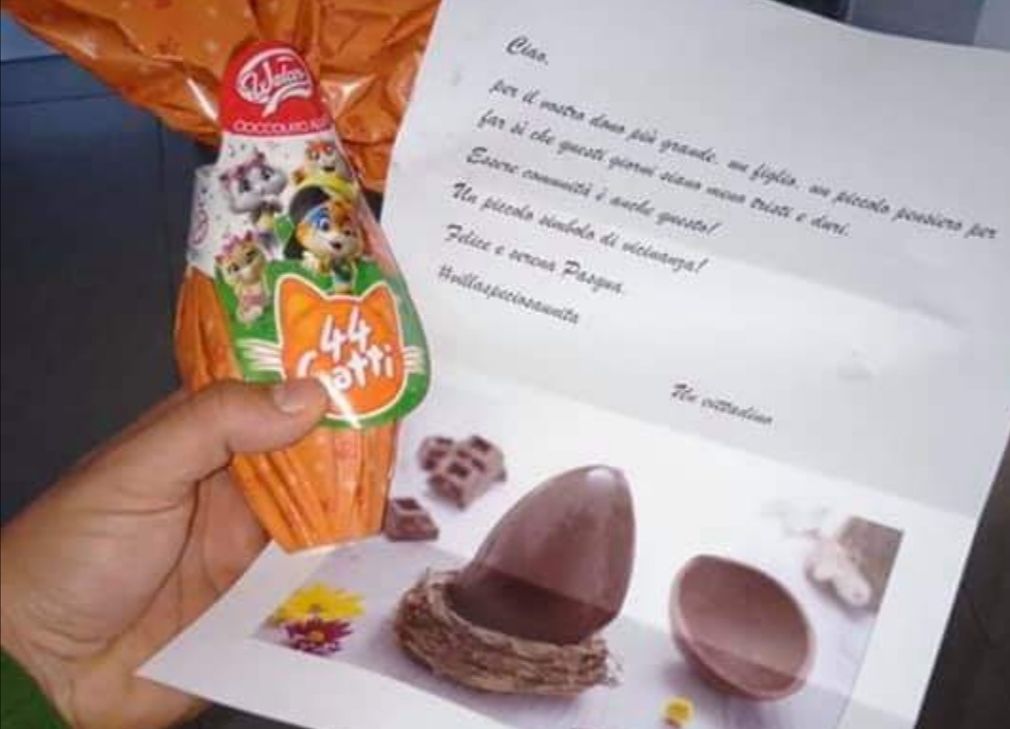 Un inaspettato scampanellio alla porta e, dopo pochi secondi, la sorpresa: una lettera piena di speranza e un uovo di cioccolato per il proprio figlio o figlia. È stata una domenica delle Palme all’insegna della solidarietà e dell’amore, a Villaspeciosa. Un cittadino, anonimo, ha infatti deciso di regalare tantissime uova di Pasqua ai bambini del paese. Sono decine le foto già postate au Facebook da tanti genitori felici: “Per il vostro dono più grande, un figlio, un piccolo pensiero per far sì che questi giorni siano meno tristi e duri. Esser comunità è anche questo. Un piccolo simbolo di vicinanza. Felice e serena Pasqua”, questo il testo della lettera, consegnata insieme alle uova da un ragazzo del paese. Tra gli abitanti, però, si rincorrono le voci: c’è chi è sicuro che il benefattore sia il sindaco, Gianluca Melis.