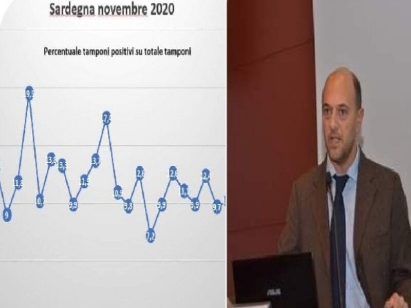 “Non vedo grandissimi miglioramenti”. E’ il commento di Goffredo Angioni, direttore del reparto Malattie Infettive del Santissima Trinità ed esperto del pool di medici arruolato dall’Ats per «monitorare e valutare i percorsi diagnostici per i pazienti Covid». “Questo è il grafico relativo alla percentuale di tamponi positivi sul totale dei tamponi effettuati in Sardegna nel mese di novembre”, ha scritto Angioni nel proprio profilo Facebook, “abbiamo iniziato il mese con 399 positivi su 2959 tamponi (13.5%), lo chiudiamo con 329 positivi su 2530 tamponi (14%). Io non vedo grandissimi miglioramenti”.