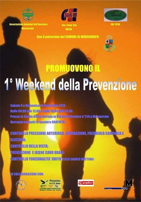 Weekend all’insegna della prevenzione a Monserrato. Sabato 9 novembre, e domenica 10, visite mediche gratuite: oculistiche, dentistiche, alla pressione arteriosa, frequenza cardiaca, glicemia, e controllo dell’udito. Si svolgeranno nei locali dello studio ottico Bertola di Monserrato, in via Redentore, dalle 9 alle 13, e dalle 16 alle 20.