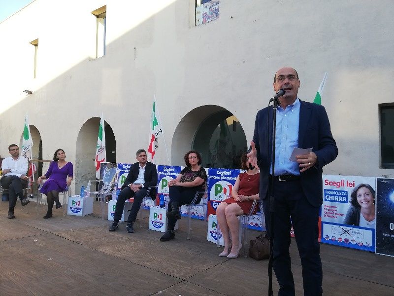 Nicola Zingaretti sbarca a Cagliari per tirare la volata alla candidata a sindaca del centrosinistra Francesca Ghirra. In un Lazzaretto di Sant’Elia con varie file di sedie occupate il segretario del Partito Democratico è netto: “Perché bisogna votare per la Ghirra? Perché c’è in gioco il futuro dei cittadini cagliaritani”, spiega nel breve punto stampa organizzato prima di salire sul palco. E lì, Zingaretti, è un fiume in piena: “I risultati delle Europee sono un primo e importante passo avanti, ricordo che in Italia vige l’apologia di fascismo, non di antifascismo”, afferma, e il riferimento è “allo striscione fatto rimuovere sabato scorso durante un corteo dei sindacati”. Zingaretti annuncia anche che porterà avanti la lotta “contro il disegno di legge Pillon, i ragazzi e le ragazze che oggi hanno vent’anni si ritroverebbero a dover combattere di nuovo tra altri venti, qualcuno vuole rimettere indietro le lancette dell’orologio delle donne e delle famiglie”.
